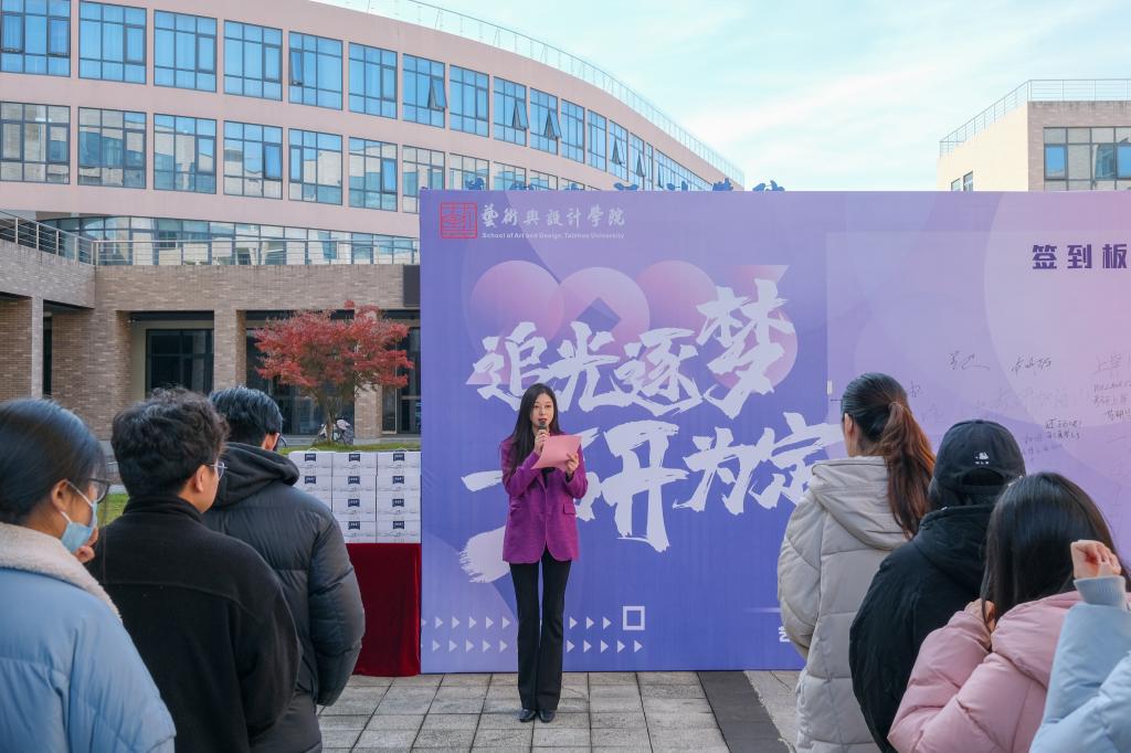 为激励考研学子的备考信心、激发考研斗志、鼓舞考研士气,12月5日下午,我院在艺术学院大楼举行“追光逐梦,一研为定”2024届毕业生考研壮行会。学院党委书记姜向阳、党委副书记王洁茹、系主任、毕业班班主任及专业辅导员出席,2024届考研毕业生参加。活动由王洁茹主持。