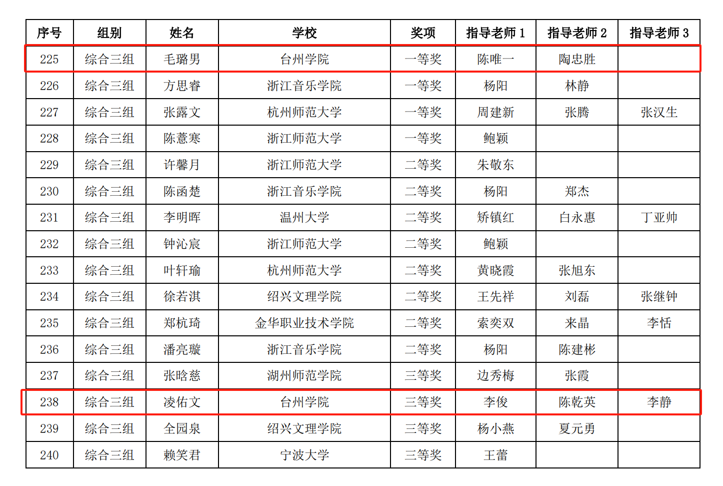 近日,浙江省高等学校第十七届师范生教学技能竞赛圆满落幕。艺术与设计学院20级美术学(师范)专业毛璐男和20级音乐学(师范)专业凌佑文分别获得一等奖和三等奖。其中,毛璐男经过激烈角逐,在综合三组选手中脱颖而出,力压群雄,夺得一等奖第一名,创造了我院学生参加省师范技能竞赛获奖的最好记录!