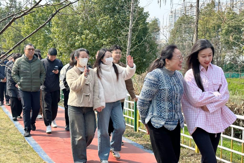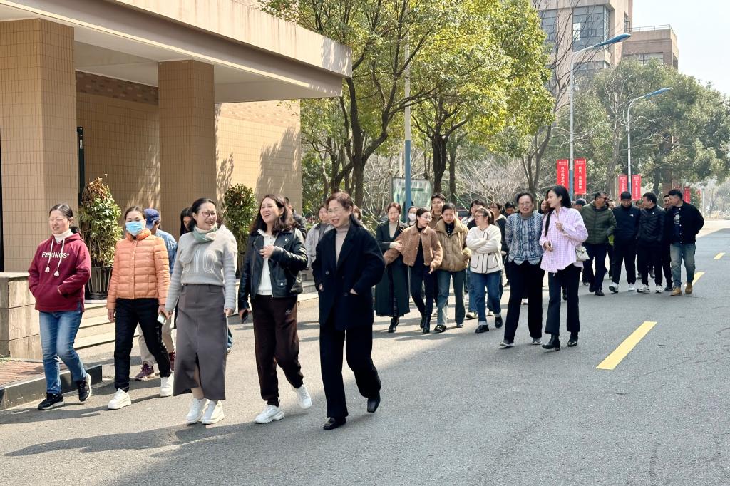 教职工们沿着校园绿道前行,欣赏着沿途景色,感受着春天的生机与活力。大家的步伐轻快而有力,脸上洋溢着幸福的笑容。在行走的过程中,他们或交流学术心得,或分享生活趣事,或探讨艺术创作,仿佛整个湖畔都弥漫着艺术的芬芳,成为校园中一道靓丽的风景线,谱写了一曲踏春健走的优美乐章。