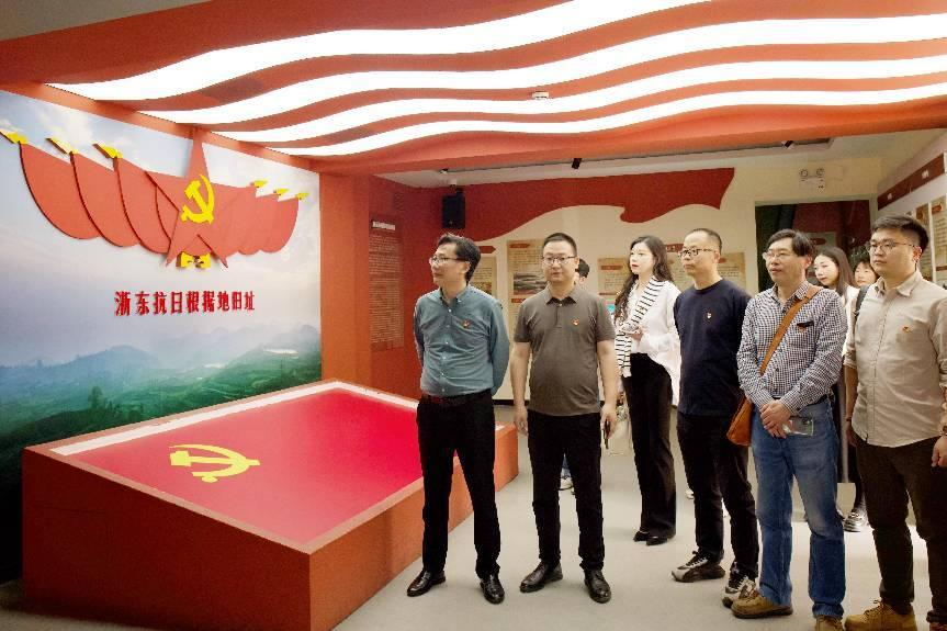 在浙东抗日根据地旧址,全体党员沿着红色足迹,听讲解员讲述浙东抗日根据地以梁弄镇为指挥中心的数百次战斗,先后观看了解了抗日战争和解放战争时期浙东革命根据地有关党的建设、武装斗争、统一战线等方面的内容。1943年至1945年,中共浙东区委机关设在此,成为浙东抗日根据地的“心脏”,留下了十余处红色革命遗迹。党员们一起重温了那段战火纷飞的峥嵘岁月,感受了四明大地上党的发展历程和红色人物足迹,上了一堂生动的党史教育课。