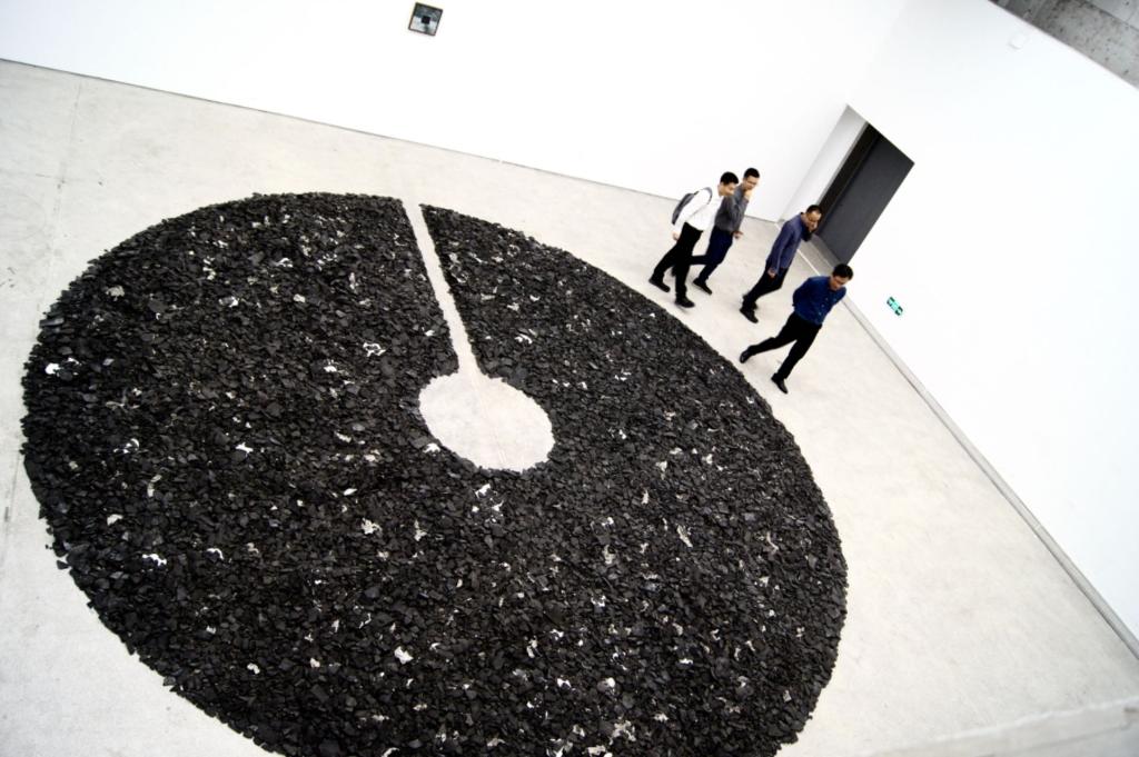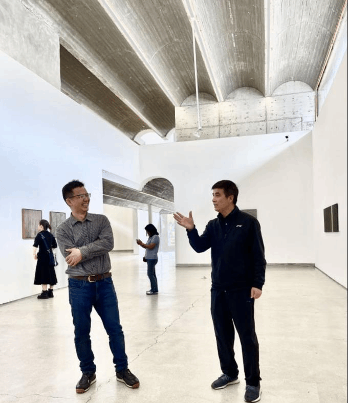 在徐海军老师的引领下,大家仔细参观了台州当代美术馆的一层、二层展厅, 通过25余件架上、装置等作品,全面了解了徐海军老师通过纸张承接水与火的刚柔并济、阴阳转化的碰撞,理解了用抽象的线形来表达再现的失与得的东方哲学。