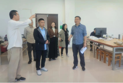 金海一行对学院的各个实验室进行了仔细检查,特别是包装实验室、陶艺实验室和工业造型实验室等重点区域。叶高峰汇报了学院实验室的安全管理现状,介绍了补充设备操作指南、完善设备安全警戒线和注意标识等改进措施,并针对近期工作进行了说明。