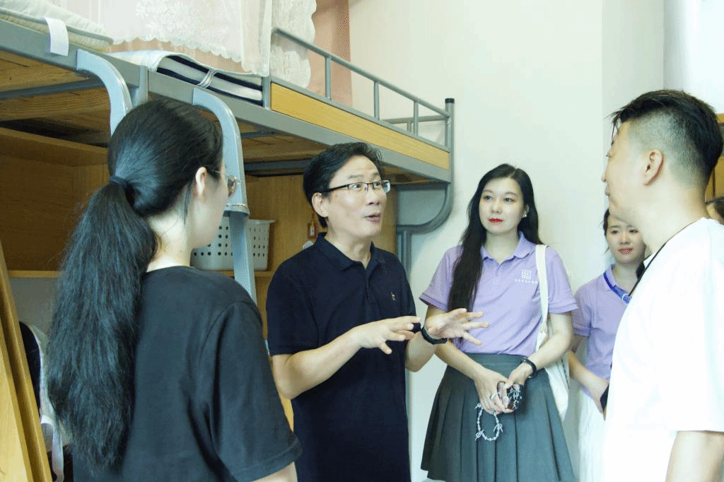 为深入了解新生思想动态,倾听他们的心声,帮助新生尽快适应大学生活,9月7日下午,我院党委书记姜向阳、副书记王洁茹以及全体辅导员带领学生干部深入新生寝室,带去暖心的关怀和问候。