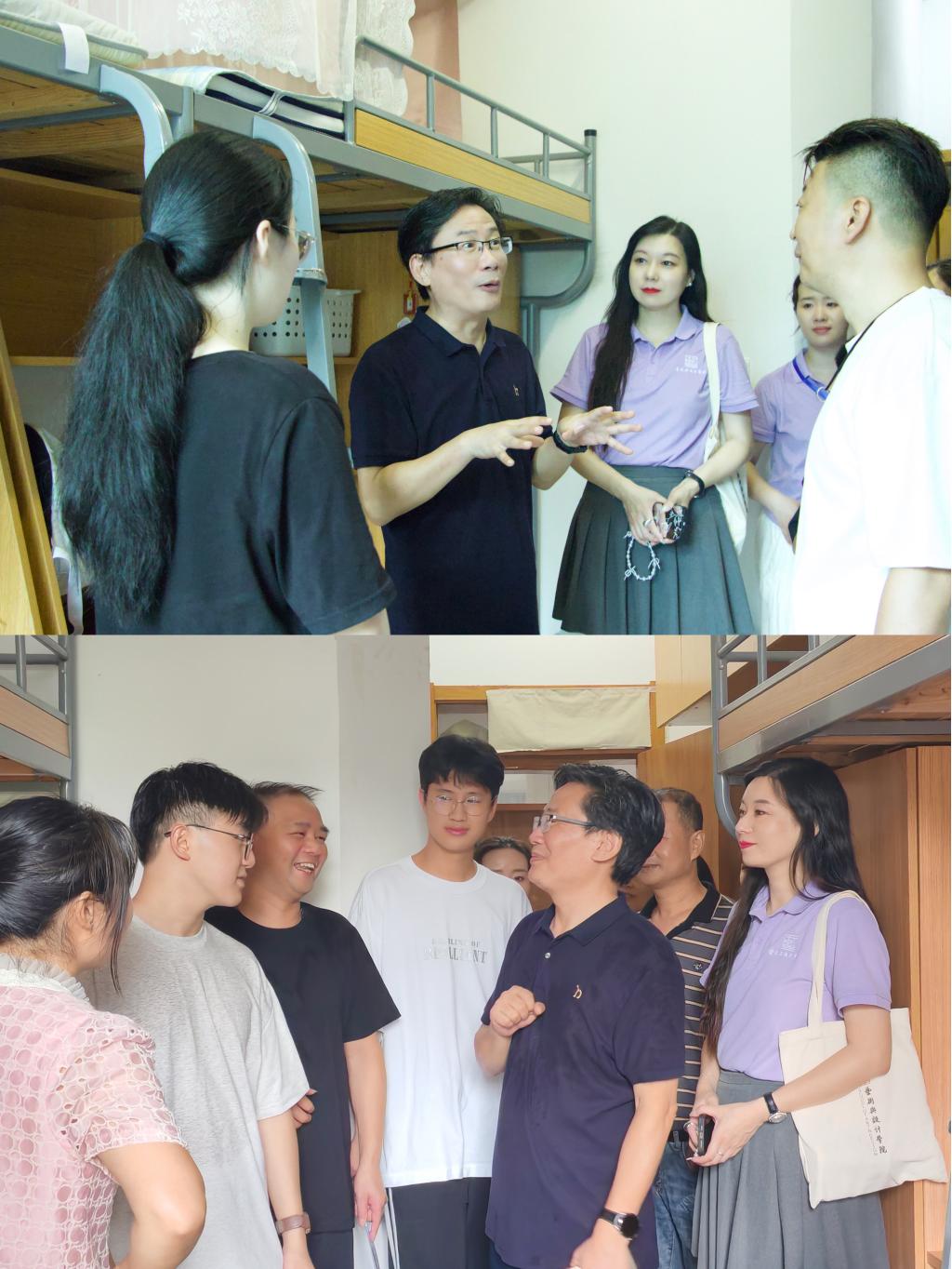 学院党委书记姜向阳、副书记王洁茹深入宿舍,走访新生寝室,与新生面对面,心连心。他们关切询问新生入学报到过程、到校后的学习生活安排及入学适应状态,鼓励同学们尽快转变角色,适应新的学习生活环境。