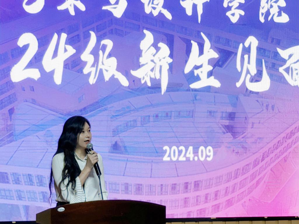 副院长叶高峰对院内国际学术交流活动的申请流程、常见问题进行了梳理,并介绍了往届学生的交流情况,为同学们提供了宝贵的参考信息。此外,她强调了艺术学院活动的丰富性,鼓励新生积极参与,让梦想在拼搏中熠熠生辉。