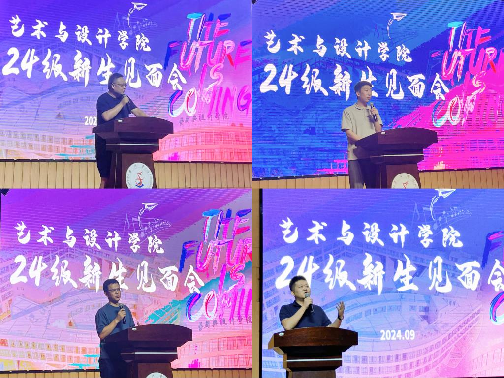 各专业负责人开展专业教育。视觉传达设计系主任秦伟分享了专业学习的方法,希望借助班主任这一角色拉进与同学们的距离,带领同学徜徉专业学习的海洋;产品设计系副主任刘一楠交流了关于学习方面的建议和思考,希望新同学在大学中要学会自主学习与锻炼独立思考能力;美术系主任徐海军介绍了该系优良的教学环境,包括硬件设备与师资力量,勉励新生苦练专业技能;音乐系主任赵子元对教学条件进行了介绍,祝愿新生们学业有成,享受丰富多彩的校园生活。