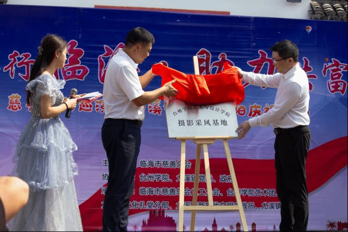 现场举行了台州学院艺术与设计学院摄影采风基地授牌仪式,冯荣上台揭牌。此次授牌仪式是继2023年艺术与设计学院艺术采风基地之后对义城村的第二次授牌。摄影采风基地为广大学子提供了宝贵的摄影实践机会,未来,他们将用镜头记录下乡村的美丽风光和淳朴民风,为义城村的文化旅游事业的发展注入新的生机和活力。