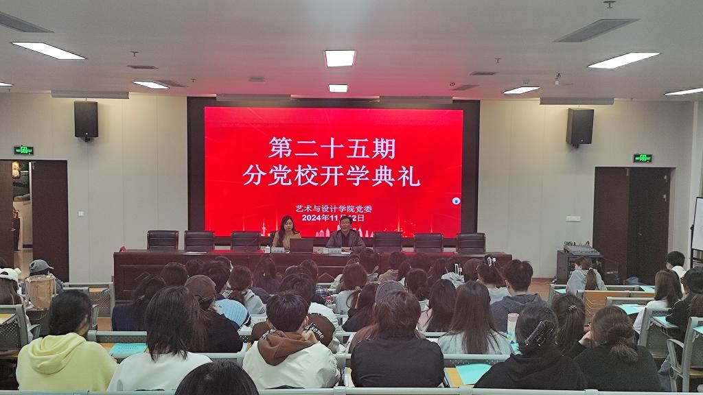 2024年11月12日晚,艺术与设计学院于院学术报告厅举行了第二十五期分党校开学典礼。学院党委书记姜向阳出席,学院党委副书记王洁茹主持,全体党校学员参加。