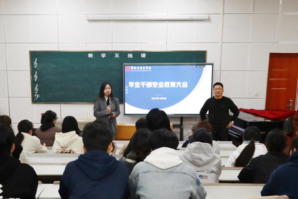 为进一步加强安全教育管理工作,提升学生干部的安全责任意识,筑牢学院安全防线,12月5日,艺术与设计学院在S102教室开展学生干部安全教育大会。校安全保卫部部长夏延锋、学院党委副书记王洁茹、全体辅导员、团学会生活部干部、班安全委员、班生活委员参加会议。会议由王洁茹主持。