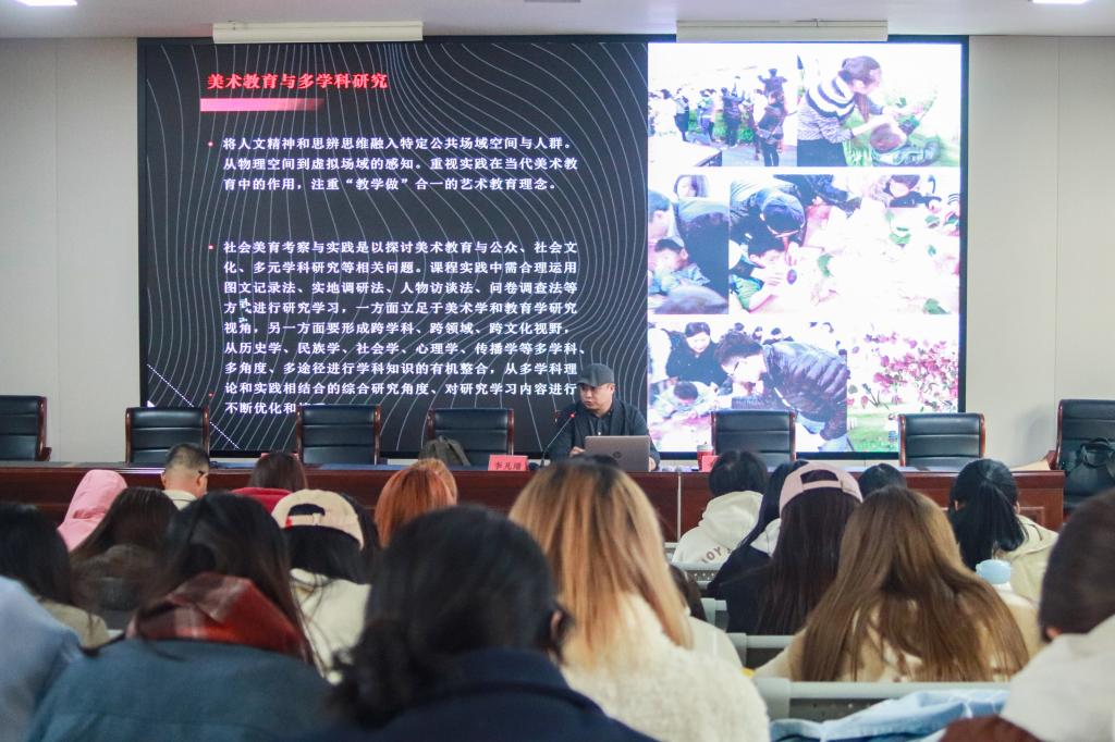 为了提升美术专业学生美育素养,激发创作热情并深化创作理解,近日,艺术与设计学院在学术报告厅举办了一场美术教育演讲。本次讲座由副院长赵振华主持,浙江理工大学硕士生导师毛宗种、黄河、李凡璠浙江外国语学院国际当代艺术研究所所长黄河担任主讲人。