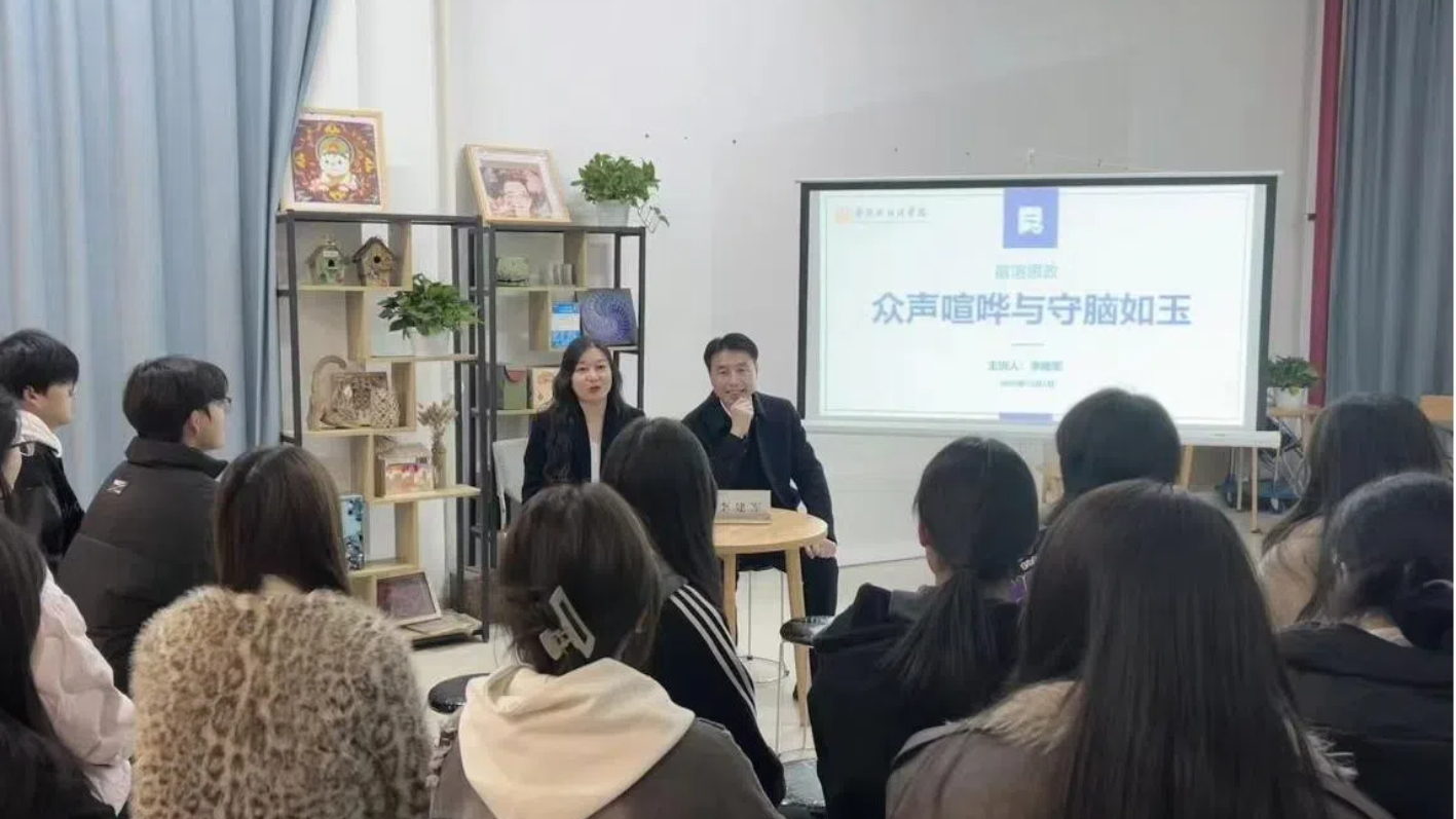 为更好地强化学生公寓育人作用,持续拓宽学生思想政治教育新阵地,艺术与设计学院将学生公寓打造为“第二课堂”,积极推进“宿溶思政”品牌建设,12月9日,副校长、党委委员李建军在学院党委副书记王洁茹的陪同下,走进艺术与设计学院“星火驿站”,以“众声喧哗与守脑如玉”为题,为同学们讲授了一场生动思政课。