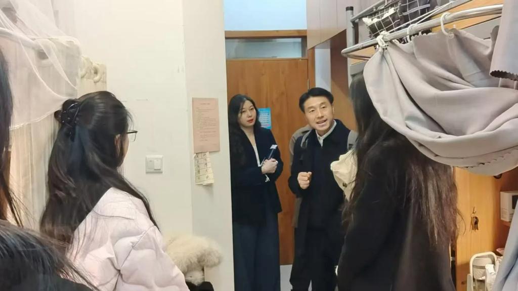 课后,李建军深入学院学生寝室,了解学生的思想动态和就业目标,为学生们送去关心和关爱。走访过程中,李建军针对学生的就业规划、激励同学们要树立远大抱负,要深耕专业,不断朝着目标规划前进,以更加饱满的姿态迎接新的挑战。同时,他叮嘱和鼓励同学们要互帮互助、和谐相处,携手走完大学时期的最后一年。