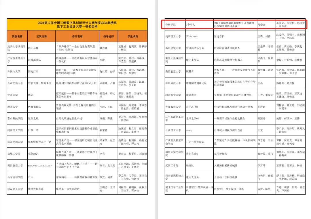 近日,在全国三维数字化大赛中,台州学院艺术与设计学院师生团队团队不负众望,凭借《SMA(脊髓性肌肉萎缩症)儿童康复出行辅助训练设备设计》在众多参赛作品中杀出重围夺得一等奖,为学校赢得了新的荣誉!此次大赛吸引了全国众多高校的优秀团队参赛,竞争异常激烈,我院团队凭借独特的创新设计与精湛的技术脱颖而出,展现出艺术与设计的独特魅力与实力。