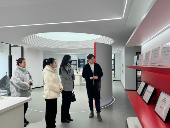 王洁茹一行先后走访了杭州博乐工业设计股份有限公司、台州市赛秀设计有限公司、浙江力唯装饰设计工程公司。杭州博乐工业设计股份有限公司总经理、2021届产品设计专业校友戴旭阳,台州市赛秀设计有限公司总经理、2004届装潢设计校友李谦红及浙江力唯装饰设计工程公司相关负责人热情接待来访,并就企业的基本情况、企业文化、人才需求等情况进行了座谈交流。王洁茹感谢校友们对学院长期以来的关心和支持,并介绍了学院近年来学科发展、人才培养、毕业生就业等情况。双方围绕校企合作、实践教学基地建设、毕业生就业实习等方面进行了深入的探讨,并就进一步推进合作达成初步意向。