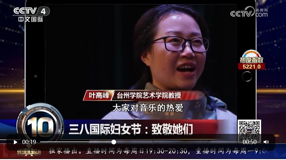 近日,我院叶高峰教授及其带领的天台女子合唱团接受了浙江卫视的专题采访,并于3月8日在浙江卫视首播,3月9日在央视4套(中文国际频道)播出。