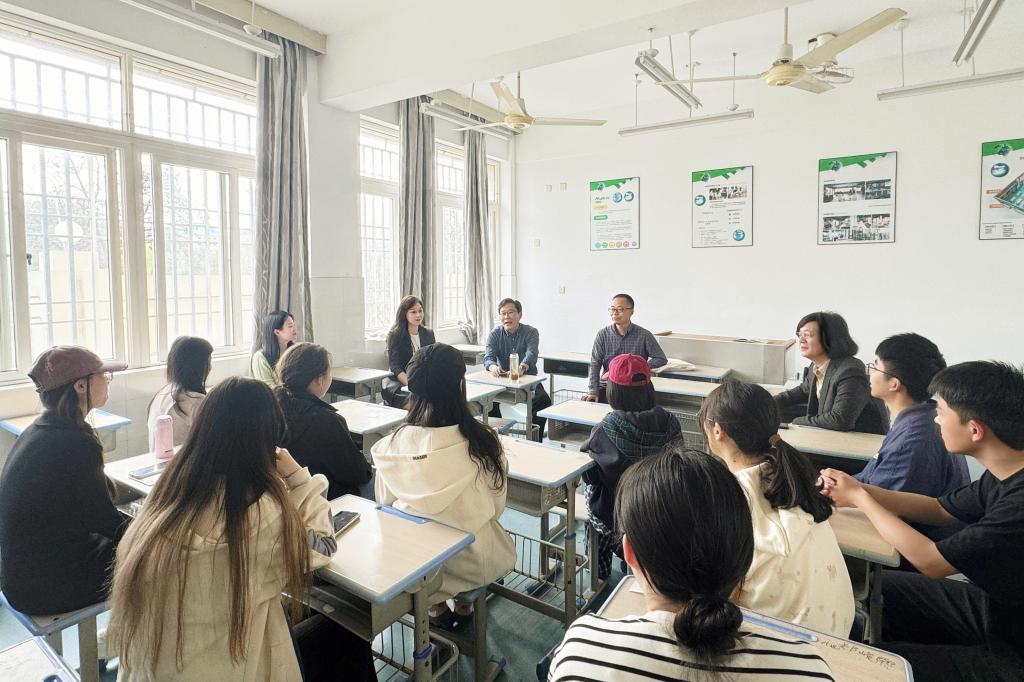 座谈会上,温岭三中校长陈海亮、副校长林永光及相关校领导对学院领导的来访表示热烈欢迎,并肯定了我院实习生的实习质量和表现。姜向阳代表学院感谢温岭三中对我院人才培养工作的全力支持、对实习生的关心指导,并结合自身经历对实习生们建议:一是要以德立身、以行育人,讲台是大家未来展示个人教学水平的舞台,更是全方位展示个人能力的平台;二是要提升自我、拓宽机遇,通过攻读研究生以不断提高核心竞争力,在就业市场获得更多选择;三是要调整自身、适应环境,师范实习不仅是教学能力的试炼场,更是独立生活的实践课,要通过合理规划饮食、优化住宿环境、来保障自身身心健康,照顾好自己,才能更好地守护学生。