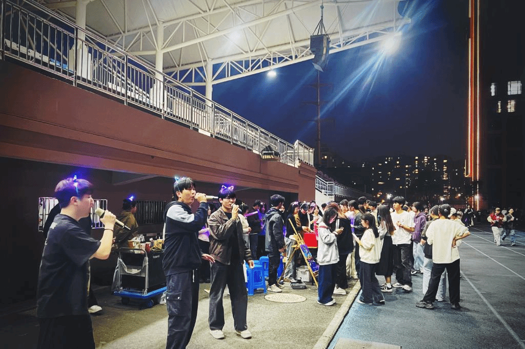 活动还邀请了艺术与设计学院音乐专业同学进行演唱表演,在激情四射的歌声中,同学们互相打气,互相陪伴,用奔跑的荧光点亮了校园,形成了一道亮丽的风景线,吸引了广大师生生的关注,纷纷加入到夜跑的队伍。本次荧光夜跑全程路线2km,在终点设置打卡点,完成夜跑任务后即可参与抽奖活动,并领取精心准备的奖品。