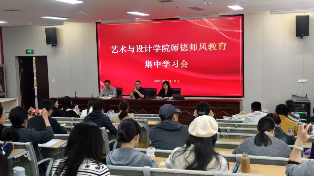 4月10日,艺术与设计学院在学院学术报告厅召开教职工大会,重点围绕师德师风教育、意识形态工作、交通安全教育等展开集中学习,并对近期多项重要工作进行了详细部署。学院领导班子出席会议,全体教职工参加大会。