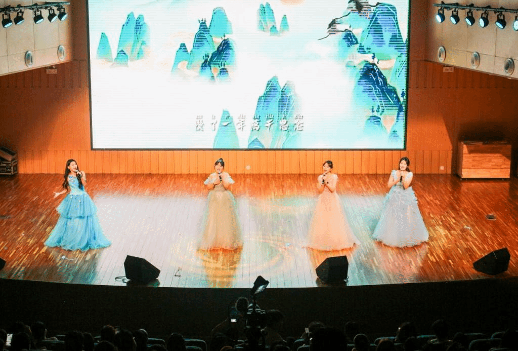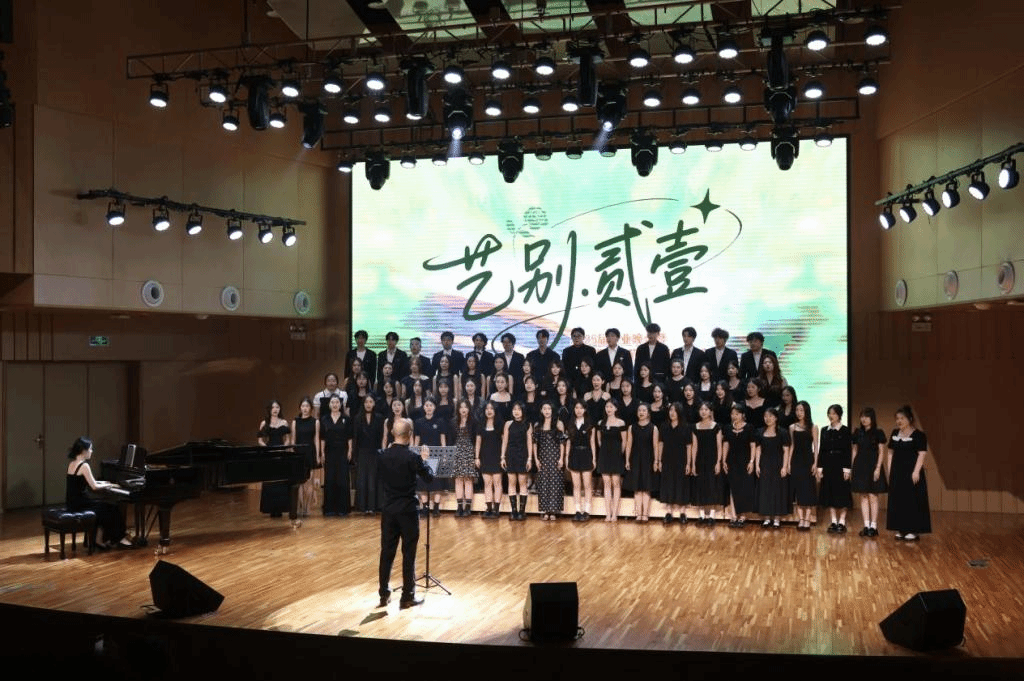 晚会在学院专业建设成果宣传视频中拉开帷幕,产品设计、视觉传达设计、美术学(师范)、音乐学(师范)等4个专业集中展示了近年来的建设成果和育人成效,彰显了专业特色和发展活力。随后,师生同台献艺,联袂呈现了钢琴四手联弹、独唱、歌舞、合唱、现代舞、民乐重奏等精彩纷呈的12个节目。深厚的师生情谊与张扬的青春活力在舞台交织,温暖与感动弥漫在每位毕业生心中。师生们共同观看了学院团学会精心制作的毕业纪念短片,每一帧都定格了青春闪亮的瞬间,记录了2025届毕业生们从青涩到成熟的成长足迹,将大家的记忆拉回到那些难以忘怀的美好时光。最后,2025届音乐学(师范)专业全体同学深情献唱的《南屏晚钟》与《再回首》,以悠扬歌声为毕业生们送上最真挚的离别祝福。