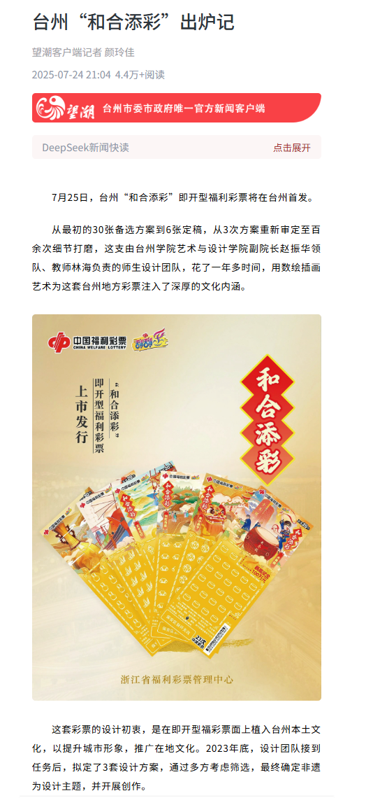 7月25日,台州“和合添彩”即开型福利彩票将在台州首发。