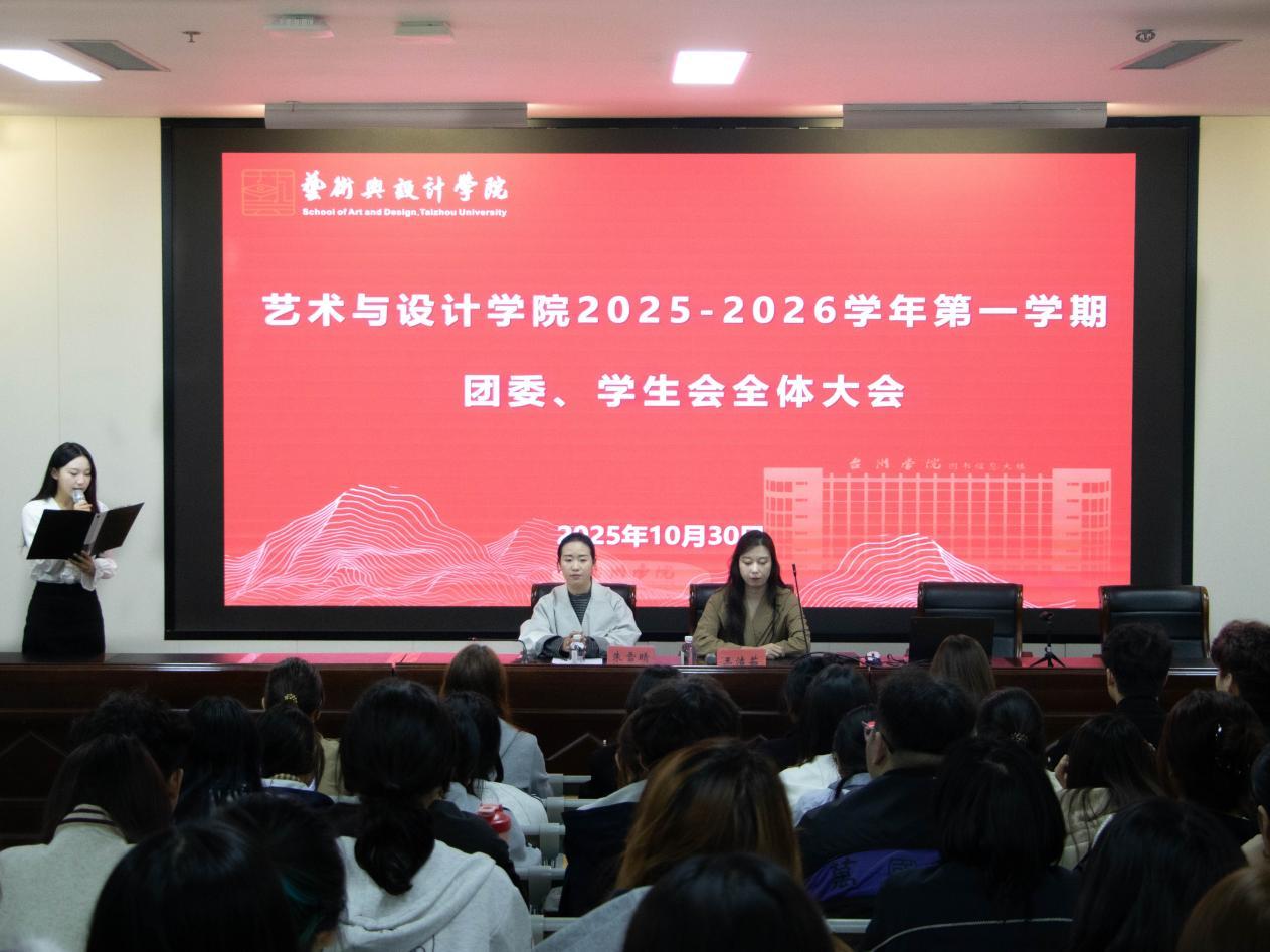 为强化学生组织的思想引领作用,夯实学风建设根基,激发学生干部队伍的整体活力。10月30日下午,艺术与设计学院2025-2026学年第一学期团学会全体大会在学术报告厅举行,院党委副书记王洁茹,团委书记朱雪晴出席会议,大会由团学会主席马千惠主持,全体团学干部参加。