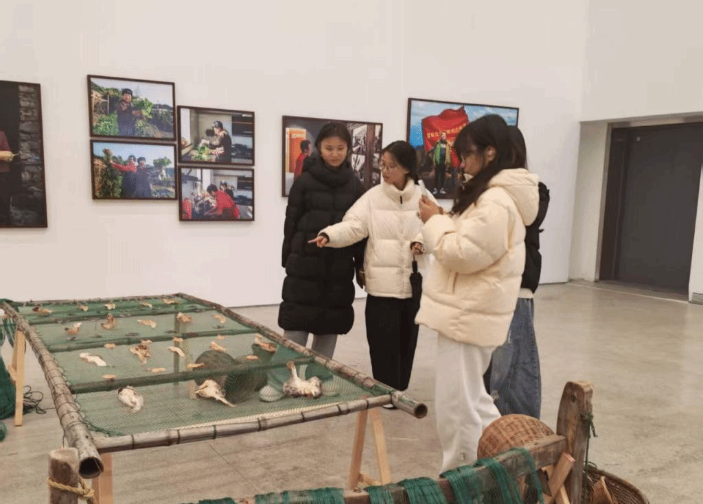 展览以影像叙事串联大陈岛发展脉络,系统呈现垦荒岁月、精神传承与未来规划。师生们在负责人的专业讲解下,既从纪实影像中感悟先辈扎根荒岛的奋斗历程,又从摄影构图、叙事手法等专业角度汲取创作灵感,实现红色教育与专业学习的同频共振。