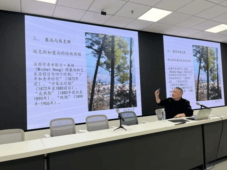 近日,艺术与设计学院特邀浙江省美术家协会副主席、秘书长、中国美术学院博士王敏杰先生,莅临艺术与设计学院开展“塞尚的启示——谈地域性绘画的超越性”专题学术讲座。讲座以保罗·塞尚在故乡艾克斯的艺术实践为切入点,深入探讨了地域性绘画如何超越地理与文化的局限,抵达艺术的普遍性与永恒性。