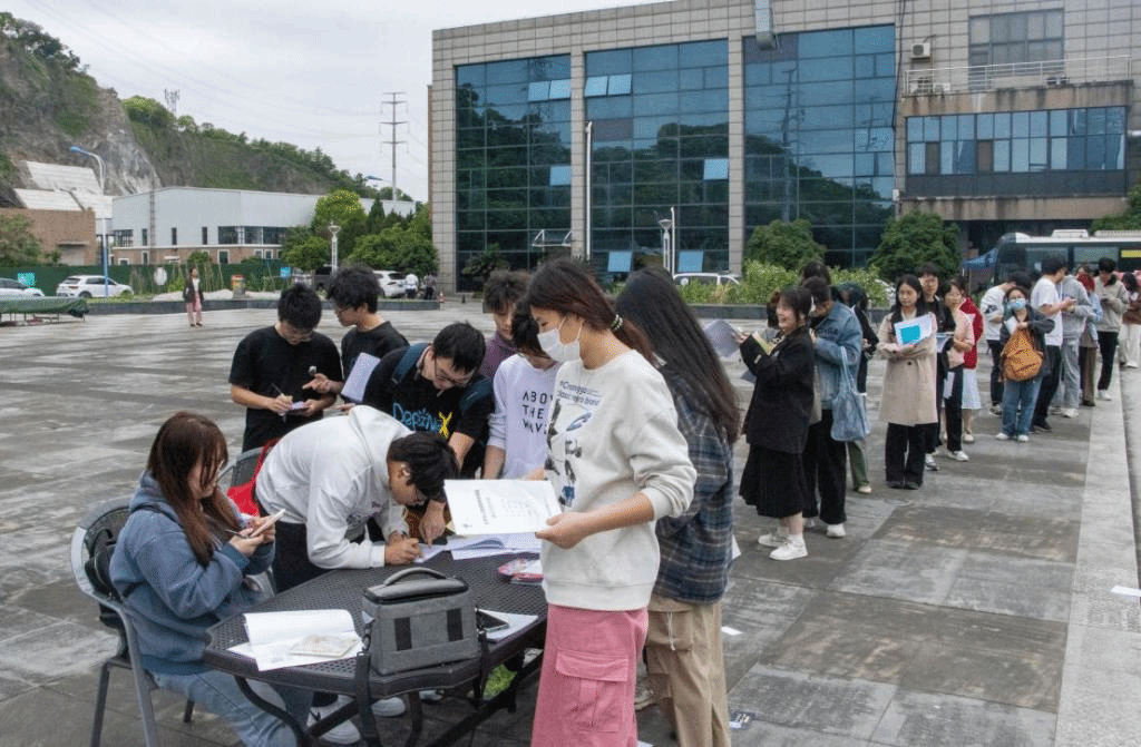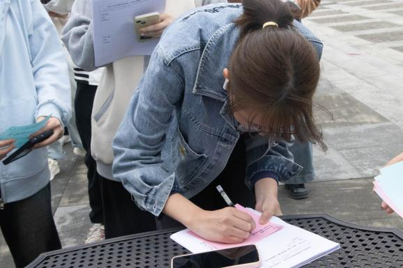 参与创作的同学们络绎不绝,一起徜徉在诗歌的海洋中,感受文学的魅力。每一笔每一划都是对文学的热情和执着的生动写照,他们潜心投入,化身小小的诗人,用心灵的笔触在纸上绘出一幅幅意境深远的画面。在诗歌的乐园里,参与者们互相启发、鼓励,分享着彼此的创作和心得。他们不仅仅是创作者,更是倾听者和分享者,共同构筑起一座心灵的交流之桥。现场排起了长长的队伍,呈现一片和谐温馨的氛围。