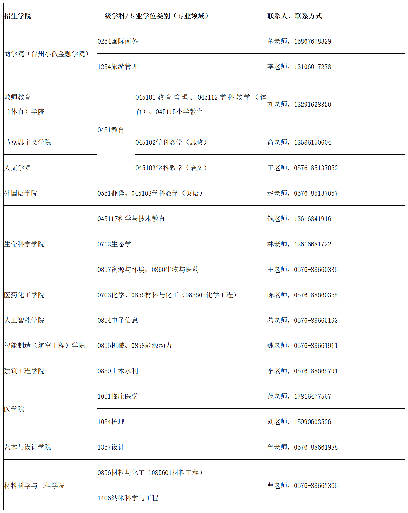 2026年我校17个硕士学位授权点招收研究生,招生专业详见《台州学院2026年硕士研究生招生专业目录》,各专业招生人数将根据2026年复试前国家正式下达的招生计划数、生源情况、学校发展需要等因素另行设置。